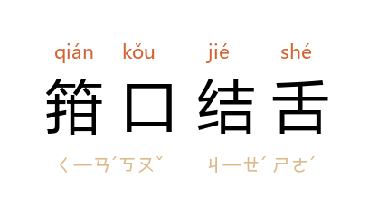 ⒈ 紧闭嘴巴,舌头像打结一般,不敢发言。宋·司马光〈乞改求谏诏书劄子〉:「臣恐天下之士益箝口结舌,非国家之福也。」也作「缄口结舌」、「钳口结舌」。