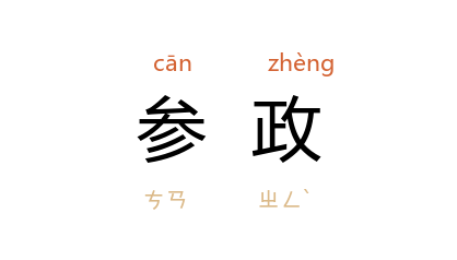 ⒈ 官名。 宋 代参知政事的省称,为宰相的副职。 元 于中书省、行中书省,皆置参政,为副贰之官。 明 于布政使下置左右参政。 清 初,各部也设参政,后改侍郎。 袁世凯 统治时期设参政院,所指派的成员亦称参政。