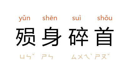 引唐 陈子昂 《为程处弼辞放流表》:“比者待罪幽囚,以殞身碎首为奉。”唐 颜真卿 《让宪部尚书表》:“在臣一门,叨幸斯极,殞身碎首,无以上报。”