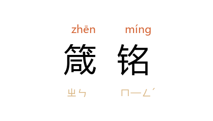⒈ 文体名。箴是规戒性的韵文;铭在古代常刻在器物上或碑石上,兼用于规戒、褒赞。