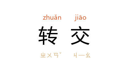 引《二十年目睹之怪现状》第六回:“再不然,递到 通州 知州衙门,托他转交也可以使得。”柳青 《铜墙铁壁》第十九章:“他把头一黑夜为九团刨了粮的单子留下,托本村的妇女交给 兰英,让她以后转交区上办理去。”