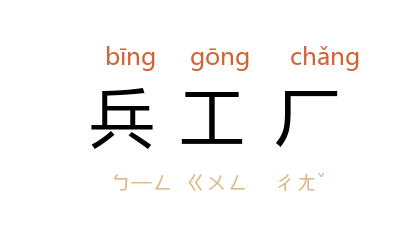 引章裕昆 《文学社武昌首义纪实》:“四十二标一营左队进攻 汉阳 城,前、右、后三队占领 大别山 及兵工厂,以一队为援队。”吴运铎 《把一切献给党·我们的工厂》:“就在这里,我们开始建设自己的兵工厂。”