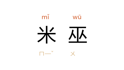 引《隶续·汉米巫祭酒张普题字》 宋 洪适 释:“盖诸 张 妖党相传授之约,观其词似是姓 胡 者初入米巫社中,故召诸祭酒受以经法,颇合史氏所载。”鲁迅 《三闲集·匪笔三篇》:“其实,古如 陈涉 帛书,米巫题字,近如义和团传单,同善社乩笔,也都是这一流。”