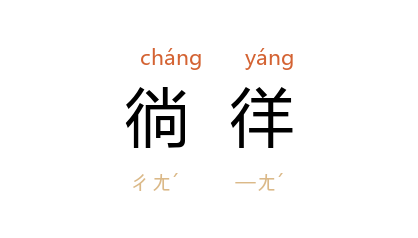 ⒉ 犹彷徨。心神不宁貌。一本作“倘佯”。 《后汉书·张衡传》作“相佯”。