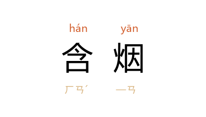 引南朝 宋 颜延之 《庭诰》:“犹火含烟而妨火,桂怀蠹而残桂。”南朝 梁元帝 《荡妇秋思赋》:“登楼一望,唯见远树含烟。”唐太宗 《咏小山》:“径细无全磴,松小未含烟。”后蜀 毛文锡 《柳含烟》词:“映水含烟拂路,几回攀折赠行人。”明 陈子龙 《江南曲》之一:“綺阁罢含烟,江清促採莲。”
