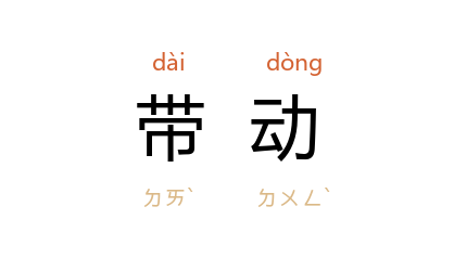 例如:「一连串的革新政策,带动社会治安的改善。」