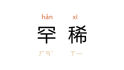 引明 刘函山 《胡十八·归田》曲之一:“这功名甚罕稀,大都是倘来的。”清 李渔 《凰求凤·堕计》:“我的机关不算奇,我的功劳不罕稀。”