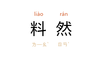 引《醒世恒言·李玉英狱中讼冤》:“孩儿如不得爹爹骨殖,料然也无颜再见母亲。”《石点头·王孺人离合团鱼梦》:“又想这婆娘烈性,料然与我无缘的了,不如早早寻个好主顾卖去罢。”《天雨花》第四回:“料然还要来吵闹,待他去了始安寧。”