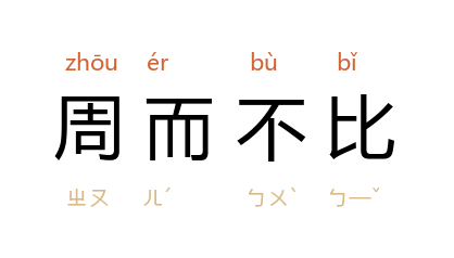 引《论语·为政》:「君子周而不比,小人比而不周。」元·马致远《陈抟高卧·第三折》:「陛下道君子周而不比,贫道呵小人穷斯滥矣。」