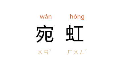 引《文选·司马相如<上林赋>》:“奔星更於闺闥,宛虹扦於楯轩。”李善 注引 如淳 曰:“宛虹,屈曲之虹也。”三国 魏 何晏 《景福殿赋》:“赩如宛虹,赫如奔螭。”南朝 齐 谢朓 《酬德赋》:“元武伏於重介,宛虹潜以自匿。”