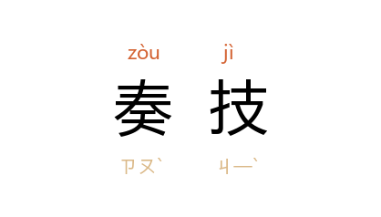 ⒈ 亦作“奏伎”。表演技艺。