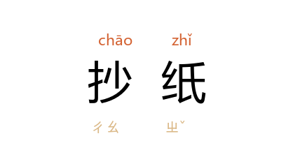 ⒈ 造纸的主要过程之一。将纸浆用水稀释至一定浓度,在造纸机的网部初步脱水,形成湿的纸页,再经压榨脱水、烘干,称为“机制纸”。手工纸则用竹帘的框架抄造。
