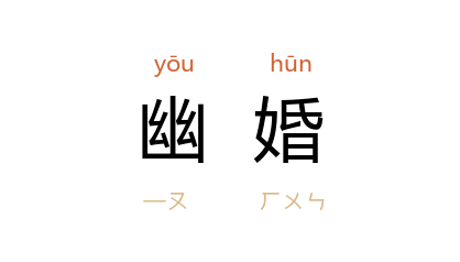 ⒈ 亦作“幽昏”。 魏 晋 志怪小说中谓人与鬼结婚。如 范阳 人 卢充 年二十,先冬至一日,出宅西猎戏,过 崔少府 墓,与 崔 氏亡女成婚三日,后生一子。见 晋 干宝 《搜神记》卷十六。后亦指非人间配偶。