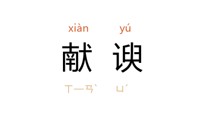 引明 谢肇淛 《五杂俎·事部一》:“王荆公 作《字説》,一时从风而靡,献諛之辈竞为注解。”明 沉德符 《野获编补遗·佞倖·名臣一事之失》:“鋐 元恶大憝,亦何足责,奈何阿諂成风,即一时号为正人,亦献諛希宠,有中人所不为者。”康有为 《闻菽园居士欲为政变说部诗以速之》:“旧党献諛狂一国,大 周 受命颂駸駸。”
