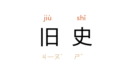 引晋 杜预 《<春秋经传集解>序》:“其餘则皆即用旧史。”南朝 宋 颜延之 《赭白马赋》:“访国美於旧史,考方载於往牒。”唐 杜甫 《冬日洛城北谒玄元皇帝庙》诗:“世家遗旧史,《道德》付今王。”