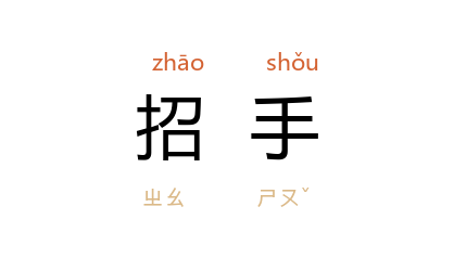 ⒈ 举起手来上下摇动,示意叫人过来或表示打招呼。