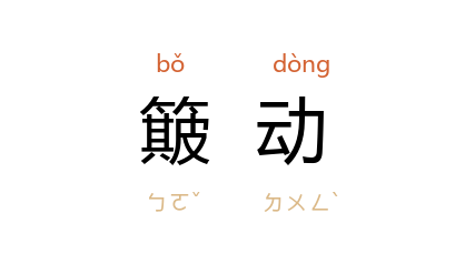 引金 董解元 《西厢记诸宫调》卷三:“擂狼皮鼓,簸动金锣。”王西彦 《风雪》一:“有时,因汽车一下突然的簸动惊醒了。”