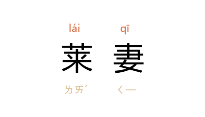 ⒈ 遂行不顾,至 江 南而止。 老莱子 乃随其妻而居之。后因以“莱妻”作为贤妇的代称。