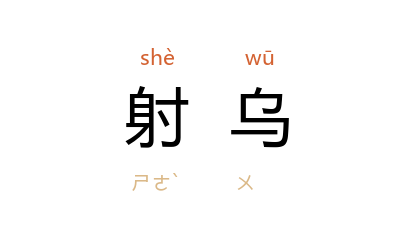 ⒈ 射日。乌,乌鸦。古代神话谓日中有乌,故以乌指称太阳。
