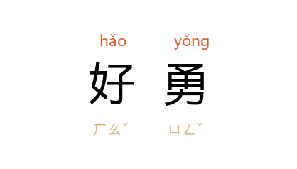 引《左传·文公十二年》:“有宠而弱,不在军事,好勇而狂。”南朝 宋 傅亮 《演慎论》:“文王 小心,《大雅》咏其多福; 仲田 好勇,冯河貽其苦箴。”唐 孟浩然 《送告八从军》诗:“好勇方过我,多才便起予。”