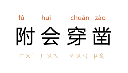 引宋 陈善 《扪虱新话·欧阳公信经废传》:“此岂可以私意附会穿凿而为之哉。”清 恽敬 《三代因革论八》:“且有以一家一经,亦有不必通者;至不必通而附会穿凿以求其通,则天下之乱言也已。”范文澜 蔡美彪 等《中国通史》第二编第二章第九节:“董仲舒 取《春秋》所记天变灾异广泛地予以附会穿凿,使《公羊》学彻底的阴阳五行化。”