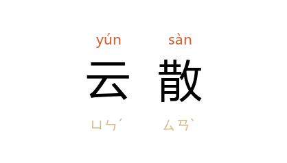 ⒈ 像天空的云那样四处散开。比喻曾经在一起的人分散到各个地方。