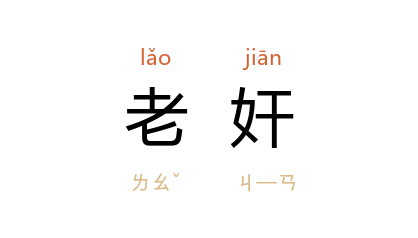 ⒈ 亦作“老奸”。指极为奸诈的人。见“老姦”。