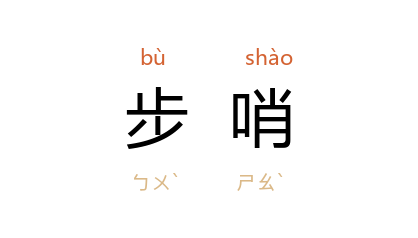 引巴金 《家》三七:“我们只听见你说什么秘密进行,所以我们就站在门外一面听,一面给你们做步哨。”