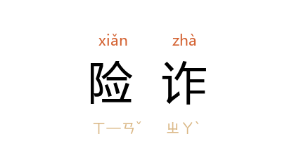 引宋 苏洵 《上皇帝书》:“陛下特以为耳目玩弄之臣,而不知其阴贼险诈为害最大。”清 蒲松龄 《聊斋志异·念秧》:“君客时少,未知险诈。”《二十年目睹之怪现状》第一回:“于是乎又把六十年前民风淳朴的地方,变了个轻浮险诈的逋逃藪。”