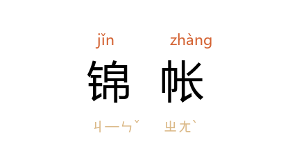 ⒈ 锦制的帷帐。亦泛指华美的帷帐。