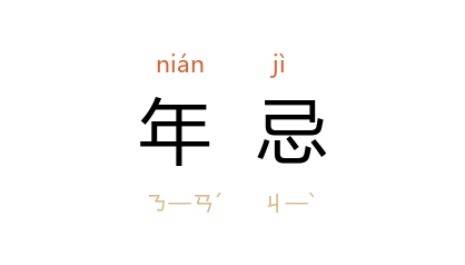 ⒈ 有灾厄的年纪。相传以七岁为始,以后每隔九年为一次年忌。如十六岁、二十五岁等;或以为凡岁数遇九则当忌,如十九、二十九、三十九等岁。