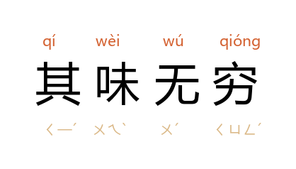 引宋·朱熹〈中庸章句·序〉:「『放之则弥六合,卷之则退藏于密。』其味无穷,皆实学也。」《歧路灯·第五回》:「学中斋长与那能言的秀才,多赴些『春茗候光』的厚扰,这就其味无穷了。」