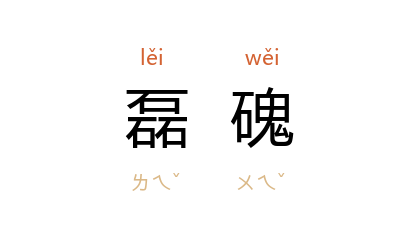 引宋 陆游 《懒趣》诗:“已矣驰驱息,悠然磊磈平。”宋 陈亮 《水调歌头·癸卯九月十五日寿朱元晦》词:“人未醉,歌宛转,兴悠扬。太平胸次,笑他磊磈欲成狂。”元 王怀 《拊掌录》:“其妻方讶夫之回疾,视其行李,但见二、三布囊,磊磈然,鏗鏗有声。”
