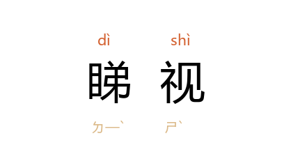 引《礼记·内则》:“升降出入揖游,不敢噦噫、嚏咳、欠伸、跛倚、睇视。”郑玄 注:“睇,倾视也。”明 何景明 《画鹤赋》:“抚斯图以睇视,久延佇以徜徉。”清 王士禛 《池北偶谈·谈异六·裴还卿》:“庭上一官人冠冕坐,睇视之,即故友 蒲阪 王秀才 也。”《人民文学》1979年第7期:“我向四周睇视了一忽儿,向他的墓碑鞠了三个躬,无言地踏着荒草走了出来。”