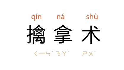 ⒈ 拳术的一种技击法。徒手格斗中,向对手身体各关节、穴道和要害部位施加手法使之失去反抗能力的技术。按实用手法可分切、点、分、封、锁、扣、压、拧、转等。根据关节活动与手法运用特点,常用的基本手法有拿、缠、背、卷、压、展、蹬、抱、转、锁、分、抓、推、搬、抠、托、点。