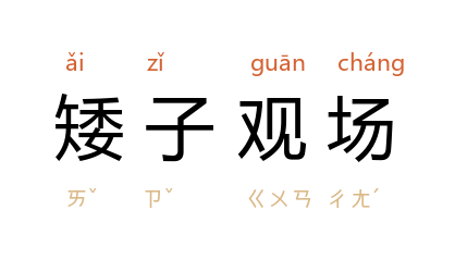 ⒈ 同“矮子看戏”。参见“矮子看戏”。