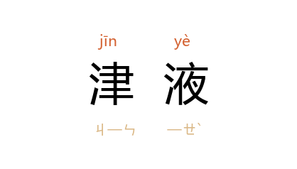 ⒈ 中医对人体内液体的总称,包括血液、唾液、泪液、汗液等。通常专指唾液。