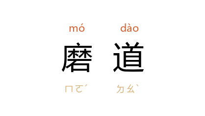 引东北民歌《白吃饱》:“铁蹄子,踏烂百姓肉皮子,炕头卷去破席子,磨道牵去毛驴子。”王汶石 《大木匠》:“衣服脏得像个土驴儿,恰像刚打磨道里钻出来一样。”魏巍 《东方》第一部第二章:“多么黑的磨房呀,黑洞洞的,什么也瞧不见。他蹲在磨道里,一时听见脚步声响,觉得有人来套磨了。”