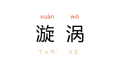 ⒈ 水流遇低洼处所激成的螺旋形水涡。
