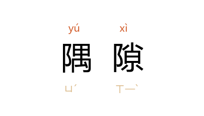 ⒈ 语山《淮南子·说山训》:“受光于隙照一隅,受光于牖照北壁。”后以“隅隙”指很狭小的地方。