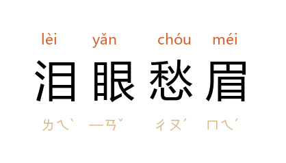 引明·高濂《玉簪记·第三〇出》:「人去天涯几许,凝望处泪眼愁眉。」《群音类选·北腔类·卷二·行香子·朝也相思曲》:「泪眼愁眉,离人样子,海誓山盟,徒成废弛。」
