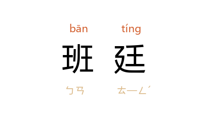 ⒈ 亦作“班庭”。犹言朝廷。以朝必列班,故称。