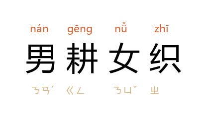 ⒈ 农业社会中男女分工,男子多下田耕种,女子多在家织布。元·萨都剌〈过居庸关〉诗:「男耕女织天下平,千古万古无战争。」也作「女织男耕」。