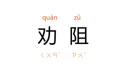 ⒊ 以理相劝并阻止其做某事或进行某种活动。