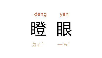 ⒈ 睁大眼睛直直的看著。常带有愤恨、发怒之意。