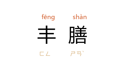 引三国 魏 曹植 《箜篌引》:“中厨办丰膳,烹羊宰肥牛。”元 虞集 《跋吴廉使可堂说后》:“诸孙幼,太夫人甚爱之,每輟食以饲。每食,率先具丰膳,使足徧赐而有餘,随以精饌进,太夫人必悦而饱焉。”明 何景明 《拟古诗》之十四:“厨人进丰饍,妙妓扬清謳。”清 汪懋麟 《赠子静》诗之二:“丰膳罗珍饈,清商发浩渺。”