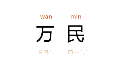 引《易·谦》:“劳谦君子,万民服也。”《史记·蒙恬列传》:“凡臣之言,非以求免於咎也,将以諫而死,愿陛下为万民思从道也。”《水浒传》第一回:“伏望陛下释罪宽恩,省刑薄税,以禳天灾,救济万民。”鲁迅 《且介亭杂文·门外文谈》:“他们都是酋长之下,万民之上的人。”