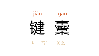 引《礼记·乐记》“名之为建櫜” 汉 郑玄 注:“建,读为键……键櫜,言闭藏兵甲也。”孔颖达 疏:“键,籥牡也;櫜,兵鎧之櫜也。言鎧及兵戈悉櫜韜之,置於武库而键闭之,故云名之曰键櫜也。”