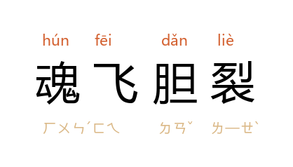 引向春 《煤城怒火》第二十章:“小岛 左堵右挡支持不住,看到 刘铁 冲在前边直取他来,吓的他魂飞胆裂, 关山 一群保护着 小岛 狂跑猛窜!”《人民日报》1968.2.2:“把敌人打得落花流水,魂飞胆裂,伤亡惨重。”