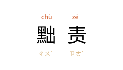 引《后汉书·王丹传》:“其轻黠游荡废业为患者,輒晓其父兄,使黜责之。”《旧唐书·段平仲传》:“平仲 与 吕元膺 抗疏论列,请加黜责。”明 唐顺之 《廷试策一道》:“果能激浊扬清,不畏强御者,量加旌奬;其狥私容奸,及蔽贤不举者,量行黜责。”